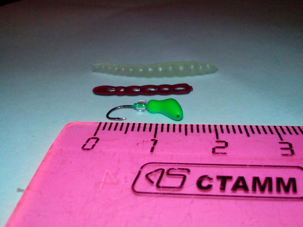 Опубликовано 22 Мая, 2015 в 13:15Май 22, 2015 Создание этой ветки стимулировано историческим событием - встречей, знакомством и совместной рыбалкой двух единомышленников-мормышистов (Ezh & Dj-sergey1 ). Дело в том, что сам я совсем недавно "подсел" на этот увлекательный вид ловли, случайно наткнувшись на него в интернете. Азартный и в месте с тем развивающий, легкодоступный в городских условиях, этот метод понравится многим. Далее я предлагаю емкое определение этого вида рыбалки выдержкой из статьи автора Bogdan. Просто я сам бы так не смог. "Мормышка начала активно применяться спиннингистами совсем недавно. Ее появление стало логическим завершением постоянного стремления рыболовов-спортсменов уменьшить размер приманки. Когда какой-то умник додумался нанизать на зимнюю мормышку полосочку съедобного силикона, то стало понятно, что такая приманка стала своеобразным атомом (неделимой частичкой) в рыболовном арсенале. Просто меньше уже некуда. А когда этот умник поймал на свое ноу-хау много-много рыбы, стало понятно, что это самое грозное оружие для сокращения численности белой рыбы и мелкого окуня. Стало интересно? Тогда устраивайтесь поудобнее, и вникайте. Снасть Для ловли на мормышку удилище не должно быть слишком жестким. Мягкий параболик — то, что нужно. Почему? Да потому, что с ним вы сможете сделать максимально дальний заброс приманки, чей вес меньше 1 грамма. Понятное дело, что контроль по кончику со столь малым весом — невозможен, а чувствительность в руку — уж и подавно. Поклевки и касания дна определяются исключительно по дуге из лески. Катушка должна обладать малым весом и иметь плавный ход. Но главное — безупречное качество укладки лески. Она должна быть намотана до края бортика. Это упрощает заброс. К выбору лески необходимо подходить с большой ответственностью. Советую полностью отказаться от применения плетенных шнуров — только монофил. Толщина должна быть минимально возможной, цвет желательно флуоресцентно-розовый или зеленый для облегчения контроля проводки. Обязательное условие — применение поводка из флюрокарбона. С ним рыба совершенно не боится приманку и смело берет ее. Приманки Сейчас совсем не многие фирмы выпускают приманки, которые своим размером подходят для монтажа на мормышке. Поэтому изготавливаются они самостоятельно. Для этого вам понадобится несколько крупных червей или виброхвостов из съедобного силикона и ножницы. Вам необходимо нарезать небольшие полоски (личинки). Приблизительные размеры: 2,5x25x2,5. Можно немного больше, можно немного меньше — это зависит от размера крючка мормышки и от того какую рыбу вы собираетесь ловить. Далее необходимо подобрать джигголовку, то есть мормышку, на которую будет насаживаться личинка. Лучше всего для наших целей подходят вольфрамовые мормышки. При одинаковых линейных размерах, они весят значительно больше, нежели свинцовые. Форма мормышки — любая, главное, чтобы она была с ушком и без бусинок на крючке. Цевье крючка должно быть длинным — для надежного закрепления силиконовой личинки. Если говорить о весе, то он будет варьироваться в пределах 0,7-1,3 г. Насаживать личинку на мормышку следует точно так же, как и обычный твистер на джигголовку. Проводка Проводка мормышки со съедобкой в корне отличается от всех, что вам были известны ранее. После заброса необходимо дать прим