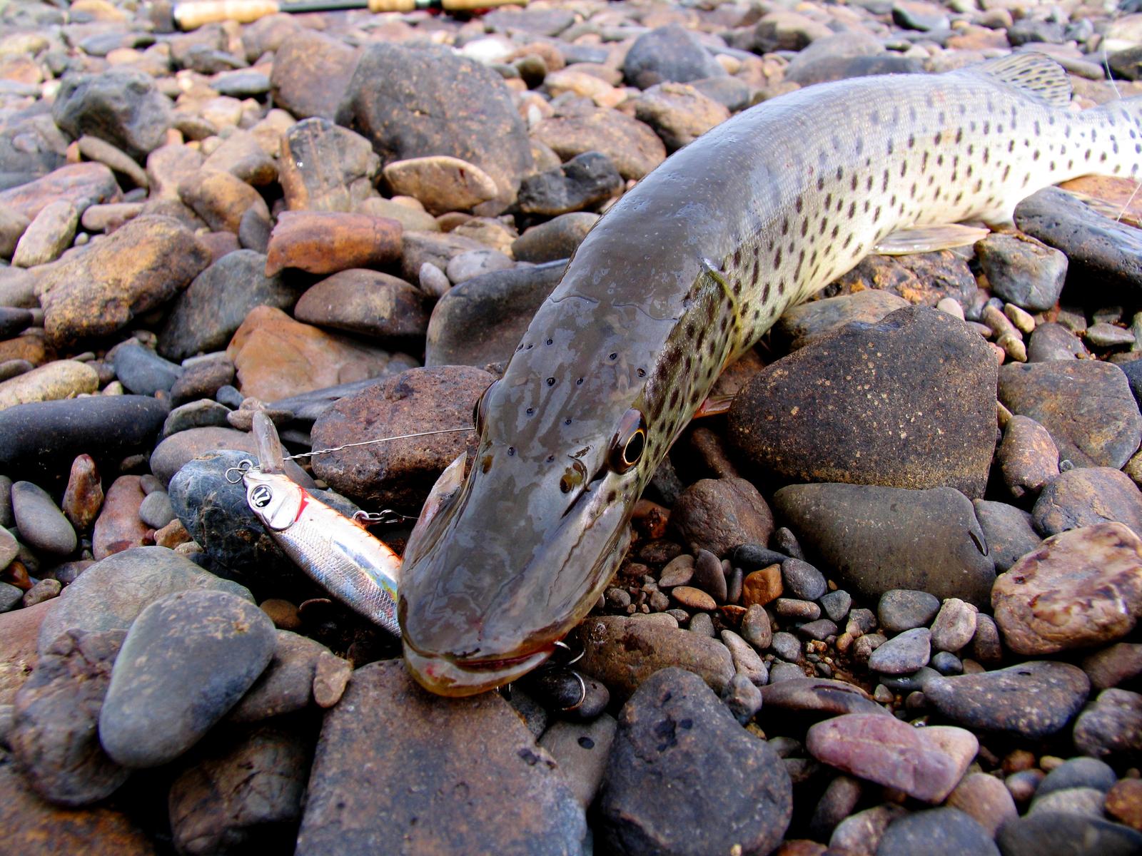 Опубликовано 12 Мая, 2017 в 13:41Май 12, 2017 Автор 🔝 VIP Вчера было хорошо-тепло и солнечно.Вечером выскочил на ближайшее болото поздороваться с щукой,но прибыв на место обнаружил,что самое что ни на есть щучье место оккупировала банда троегубов-то в одном,то в другом месте вода буквально вскипала и тут же все успокаивалось,что бы повториться в другом месте.Но тем не менее на первой же проводке вместо троегуба воблерок атакует невесть откуда взявшийся шнурок и ...прощай любимая цацка.Пришлось ставить проводок и началась потеха Поклевки троегуба резкие,с ударом(за что,собственно и нравится его ловить),но вот случается мегапоклевка,даже фрикцион взвизгивает,и виновник на берегу Монстр из племени троегубов.Вскоре случается еще один выход щуки-укрупняю приманку,неспешний твич,щука не выдерживает. В глубине заливчика раздается хороший плюх,круги вижу и топаю туда Но что бы попасть щуке в пасть(во,блин,рифмоплет) нужно решить задачку по стереометрии-полет по прямой траектории невозможен....как все таки украшают японские воблеры наши родные российские деревья-вон,гад,висит среди кустов,тройниками поблескивает.Садитесь-вам двойка. Это было вчера.А сегодня дубак,дождь и ветер,но тем не менее в перерыве между грозами решил сгонять,порадовать щуку своей мордой лица. Щука сегодня была не в настроении-пришлось попотеть,подбирая ей вкусняшку. Сработал 112 пойнтер на очень длинной паузе.Начала заходить очередная туча и решаю топать назад к машине,попутно пройдясь джигом.Меняю шпулю -ставлю светлую нитку-дно илистое,груз маленький и отследить проводку можно только по шнуру. На очередной проводке,под противоположным берегом с крутого свала происходит поклевка и вот шнурок побрыкавшись для порядку ждет приговора. Приговор суров-утопить.Следующий ловится возле машины Фотосессия происходит при первых каплях,в машину прыгал уже при ливне. Рожден рыбачить,но вынужден работать