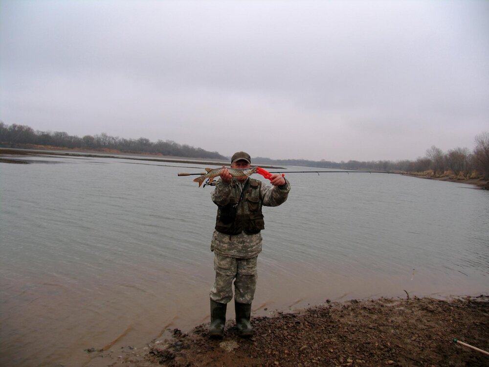 Опубликовано 8 Ноября, 2017 в 10:24Нояб 8, 2017 Автор 🔝 VIP Вчера мотался на Подгорное-прогноз погоды обещал почти штиль и пасмурную погоду.Приезжаю-ветер задует не по детски,кроме того начал накрапывать дождь.пока собрал лодку,снасти.замерз,как Бобик,а глядючи на мутильщиков.стоящих цепочкой на перекате вообще захотелось к печурке поближе,но проявил недюжинную силу воли погреб в даль,не очень светлую Вот она,яма-тут вообще задует как в трубу,но якорюсь и начинаю мутить воду приманками.Забросы получаются только по ветру,иначе дуга из плетни и потеря контроля.Через полчаса приходит понимание,что кроссовки-это не самая лучшая обувь сегодня,к тому же периодически пускающийся дождь отбили таки охоту к мазохизму и,поймав щуку престижа рванул по ветру до машины. Щука оказалась настолько мощной,что самостоятельно вывалилась через сетку подсачека. Сегодня по пути на работу завернул на речку-погодка тоже "веселая"-небольшой дождик со снегом,но и ветерок небольшой,рыбачить вполне комфортно.Место популярное,поэтому оказался не один-коллега сообщил,что видел щуку,вышедшую за блесной и все.Тут ямка,посему джиг -получаю несколько покусываний,пощипываний,приходится уменьшиться в весе грузила до минимума-паузы станут дольше,что очень хорошо для пассивной рыбы.Груз 6гр. плюс четырехдюймовая резина (виброхвост с большой лопатой),позволили увеличить паузу до секунд пяти,на поднимая приманку при этом высоко от дна. Результат вот он-коллега любезно согласился запечатлеть мою физиономию.Все-можно ехать в лес с чувством выполненного долга. Рожден рыбачить,но вынужден работать