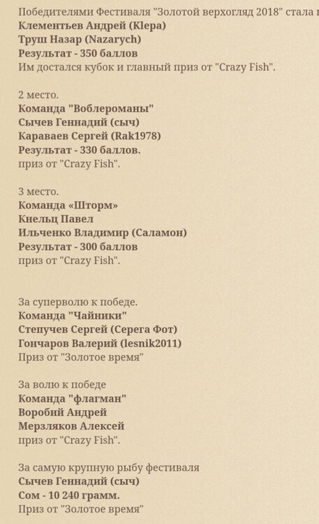 Опубликовано 13 Июня, 2018 в 03:02Июнь 13, 2018 🔝 VIP Всем привет! Вот и состоялся турнир "Золотой верхогляд" проводимый спиннингистами форума Амур-берег г Хабаровск на реке Амур . Сразу хочется поблагодарить ребят за тёплый приём , спасибо организаторам и всем участникам ,а так ОГРОМНОЕ спасибо спонсорам ,магазинам На Перекате ,Crazy fish , Золотое время ! Это второй мой выезд на этот турнир ,последний раз был в 2015 году , и в этот раз подчерпнул много нового , думаю что и как мой напарник Валерий Иванович (ник Валера Лесник) ,спасибо ему за поддержку ,было интересно рыбачить в компании опытного рыболова . Первый этап проходил с 13 до 20 часов и естественно посвятили много времени разведке , поймали трех сомов и одного краснопера и ещё один сом(кг5-7) сошёл сломав тройник . Не обошлось и без приключений ,пробили дно лодки ,но в этом моя вина ,т к не хватило опыта прохождения закореженых заливов на малых и средних оборотах , Скажу лишь одно ,ребята следите за положением лодки относительно поверхности ,линии дна и поверхности должны быть параллельны или ближе к этому значению . Спасибо Валерию Ивановичу что он оперативно справился с этой проблемой, а я в этот момент детального изучил берег в этом районе и поймал сома и ещё одного упустил,но как говорил ранее они в зачет не пошли ,т к не хватило считанных миллиметров. Второй этап проходил с 7 утра до 13., на этом этапе мы решили сделать упор на поимку верхогляда, т к только за него можно было получить максимальные баллы , но кроме двух вялых поклевок за все время так и не удалось достичь какого либо результата. Изменено 13 Июня, 2018 в 13:14Июнь 13, 2018 пользователем Серега Фот Аренда автобусов