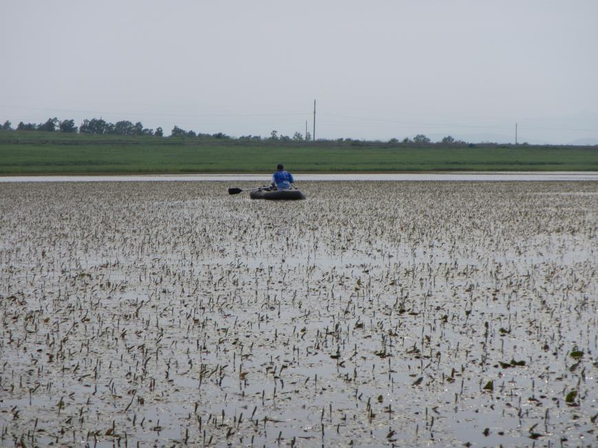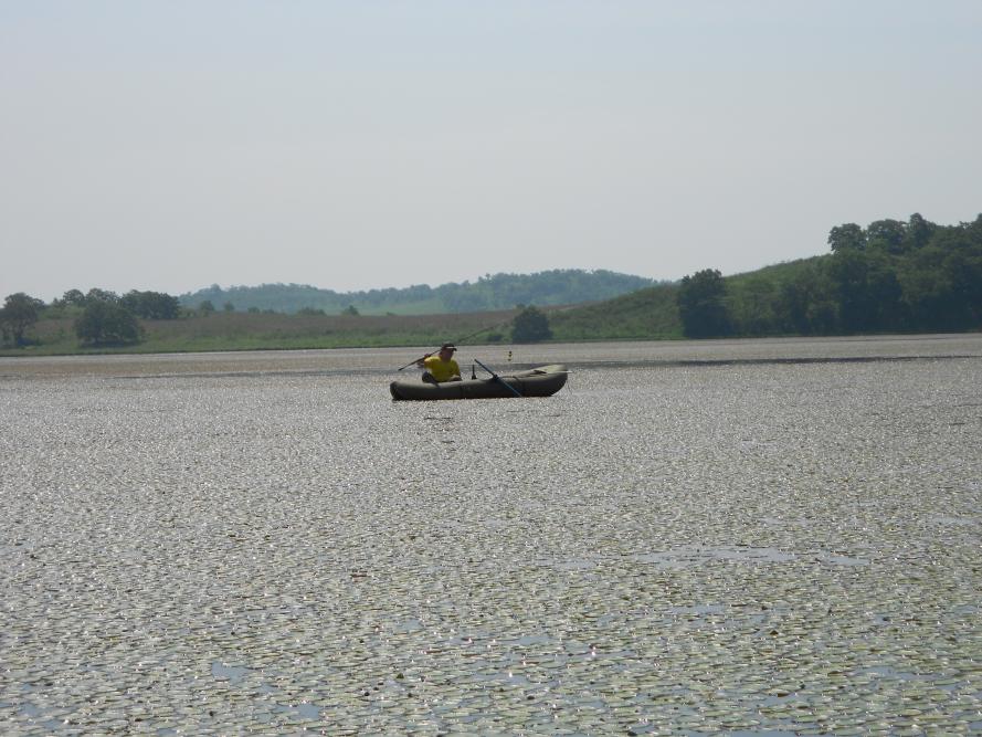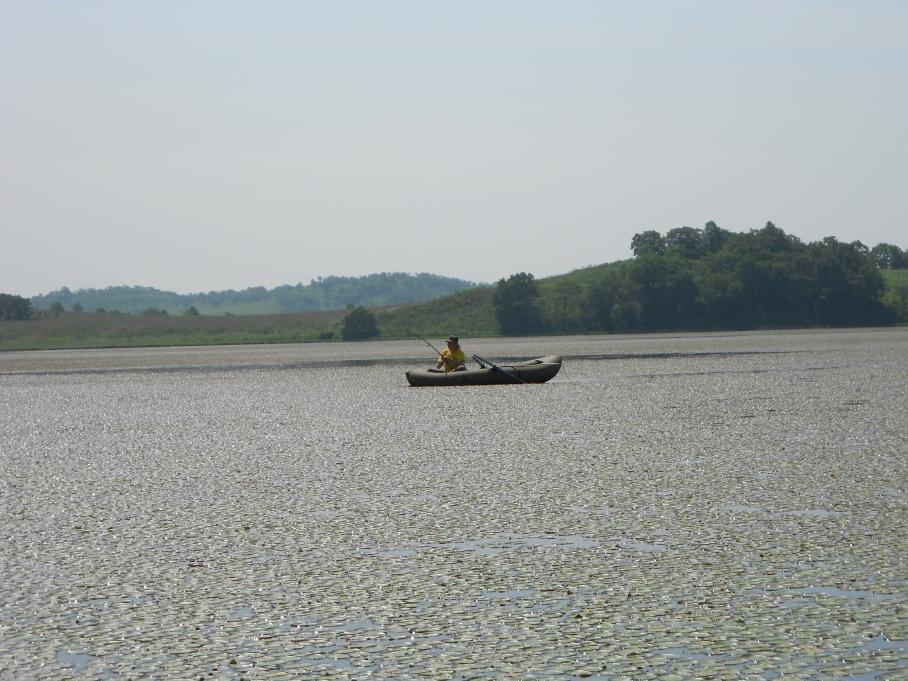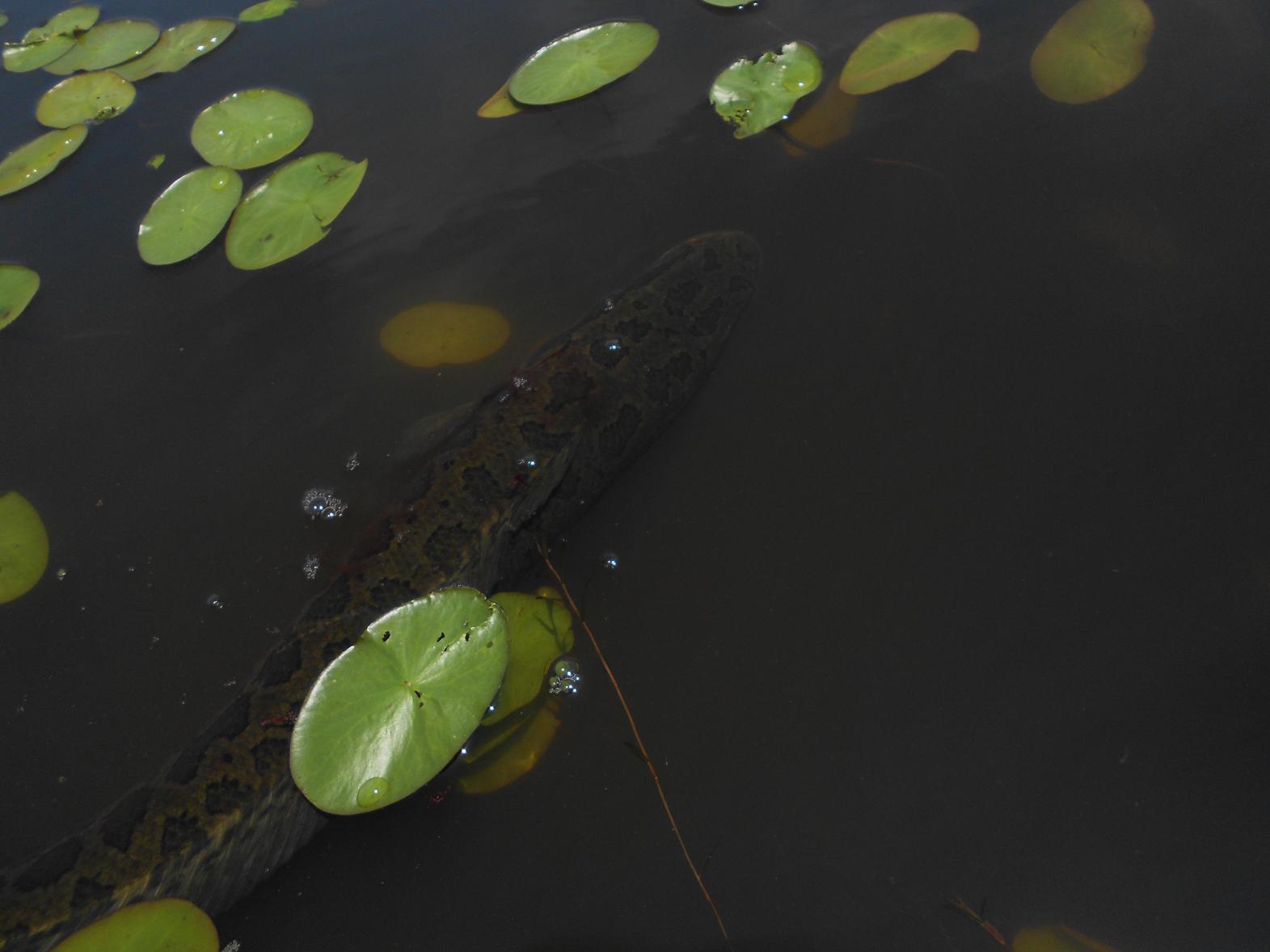 В те же непродолжительные моменты, когда ветра не было и жарило солнце, поля кувшинок периодически вскипали под тучными стадами змееголова, особенно , если чайки летали у самой воды.