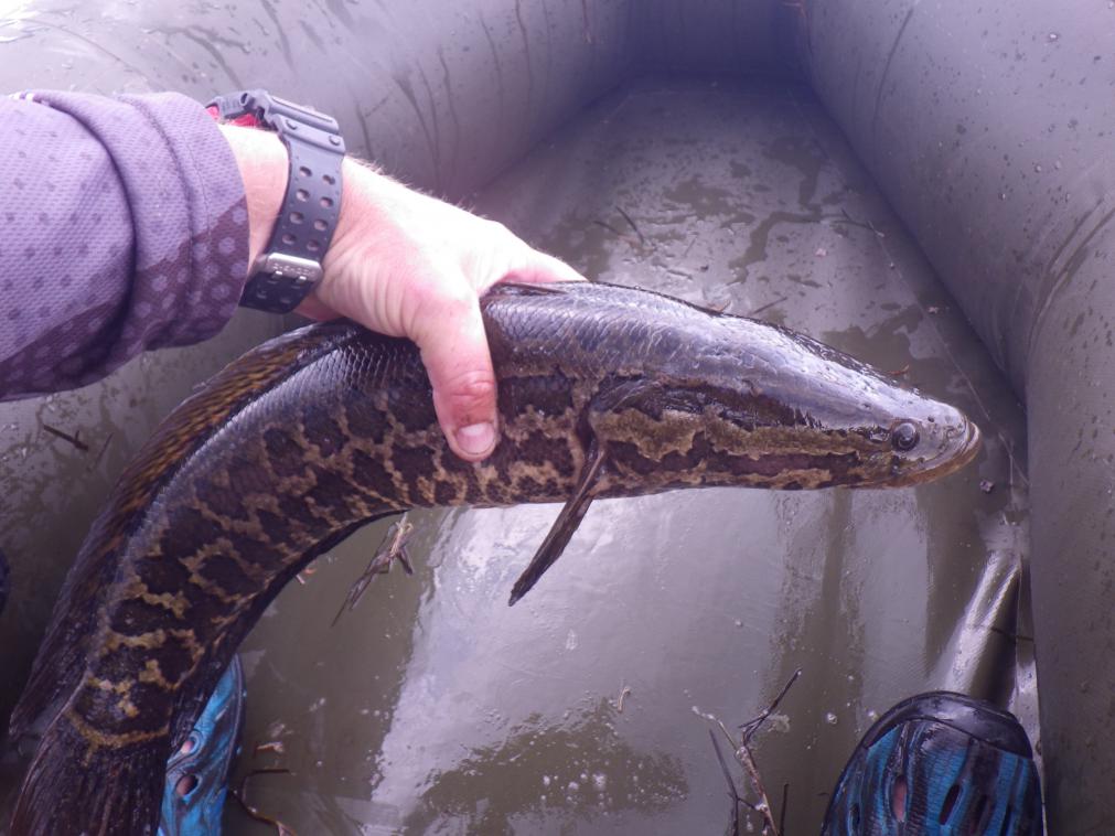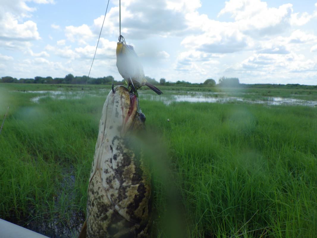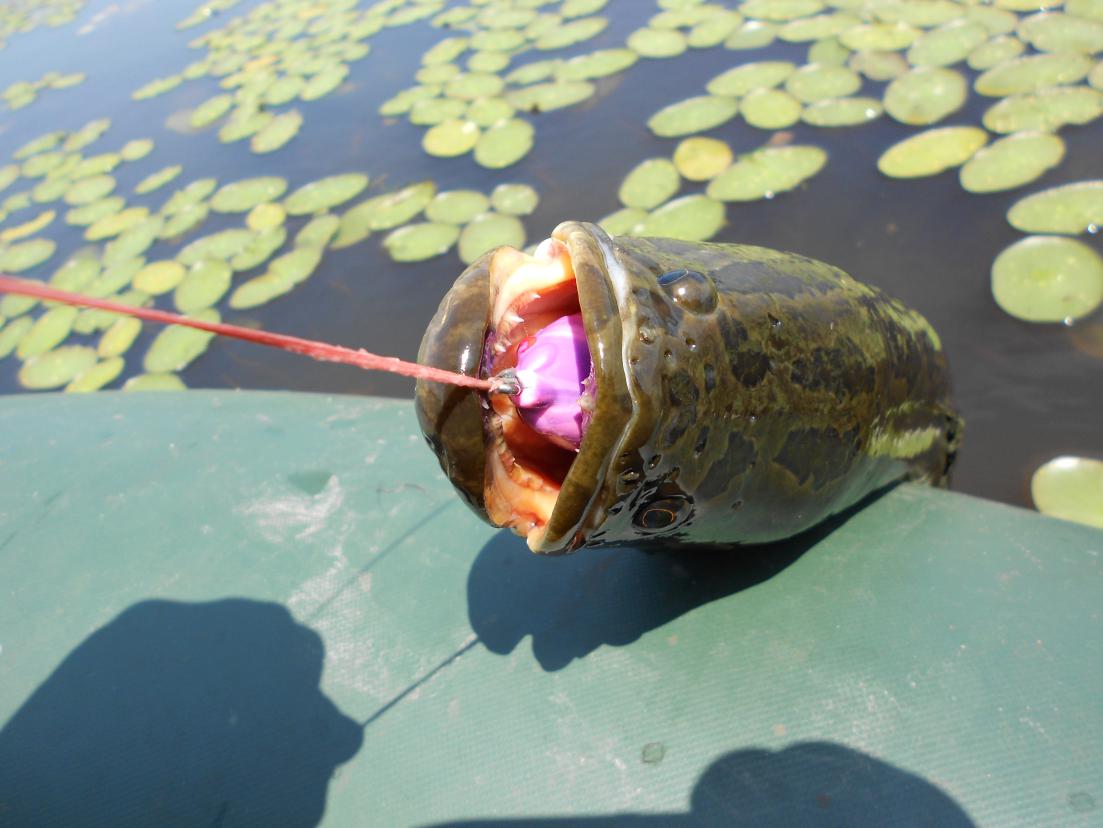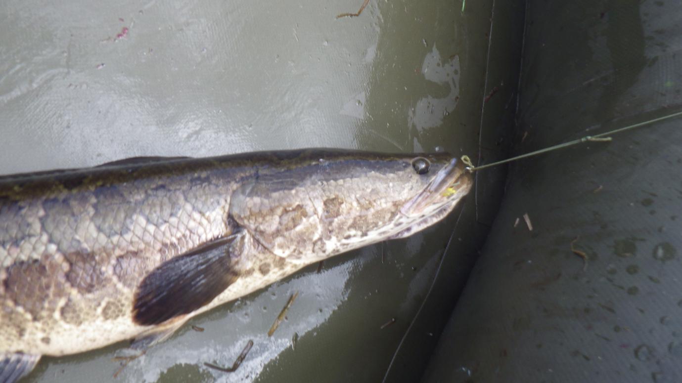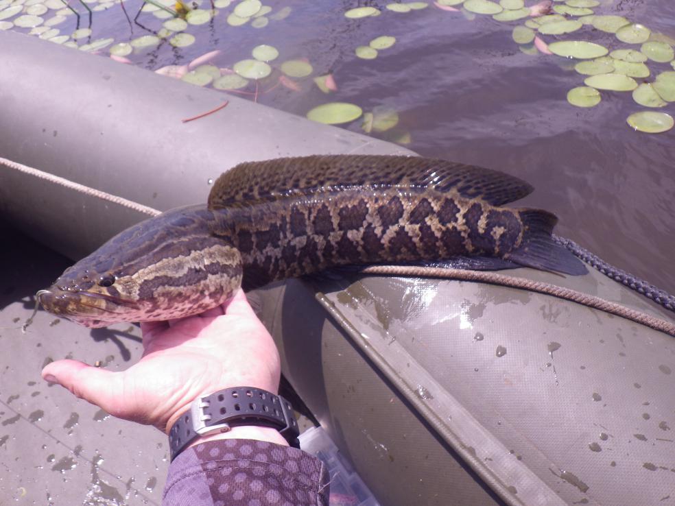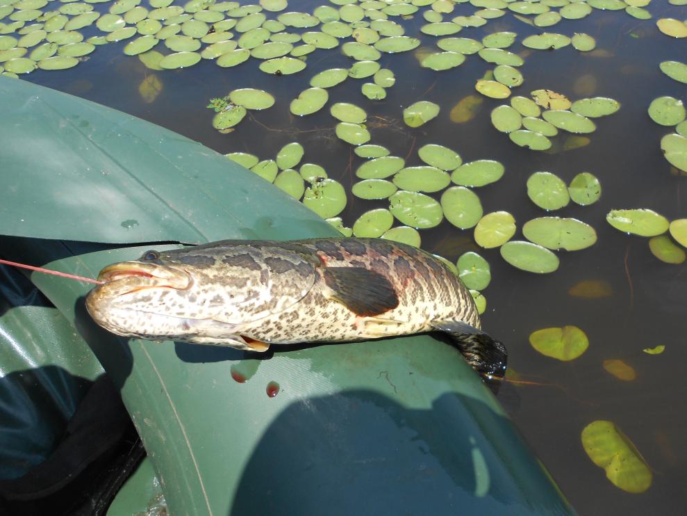 Приехали с югов,гоняли змея....достаточно удачно.С погодой непонятки-солнце/ливень/ветер но змееголов на нересте-полный игнор,лягушка по спинам гонзает ноль внимания,но некоторые особи ведутся,видать не все размножаются.В этой ситуации главное найти этих некоторых....В пятницу с 4 до 7 нашел двух таких и подобрал ключик.В субботу с 11 до 17 взял 10 змеев,дальше пошел ливень с молниями и я 2 часа спасался под мостом....итог полная лодка воды.Саня Субарист так же взял десяток,подлетел Фот и тож зарыбился...В воскресенье за пару часов охоты одна атака и все.Поднялся сильный ветер и начала меняться погода,решил пораньше выскочить в сторону дома....Субарист остался и взял 6 змеев,Фот одного....Как то так....Взяли 30 змееголовов,почти всех отпустили,трофеев небыло.Пара за четверку остальные обычные....НХНЧ