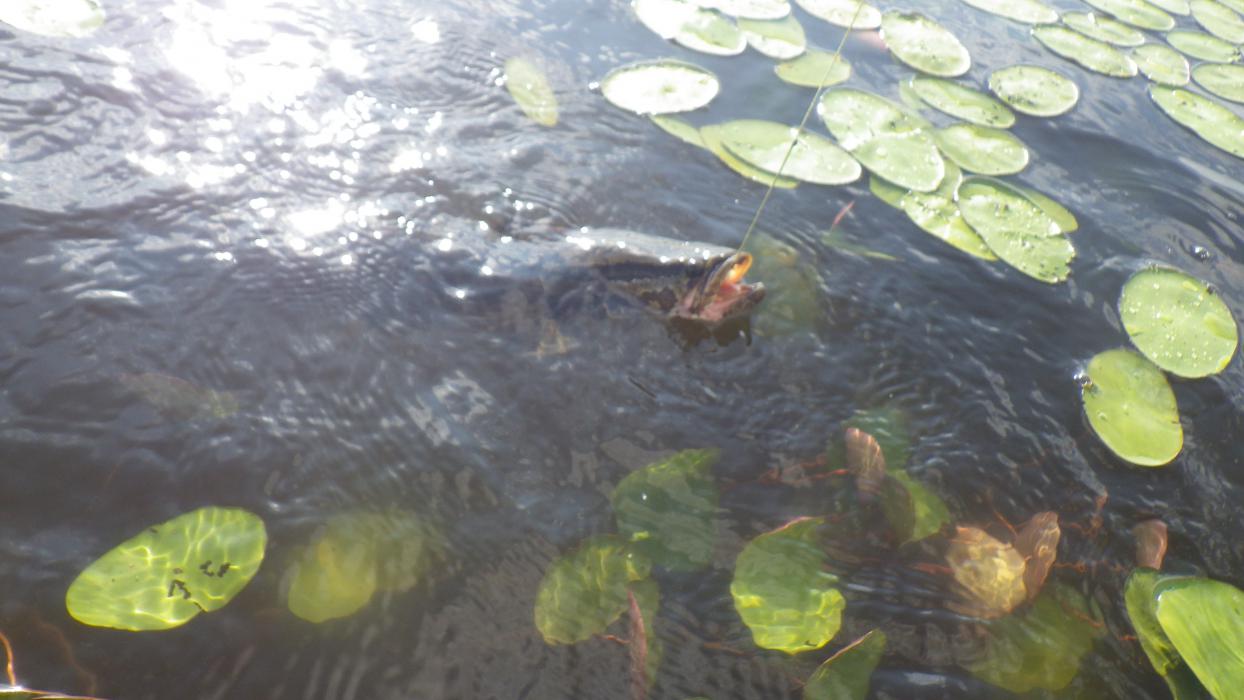 Красиво взял - услышал, подошел, высмотрел, подал лягуху - он взял с первого заброса.